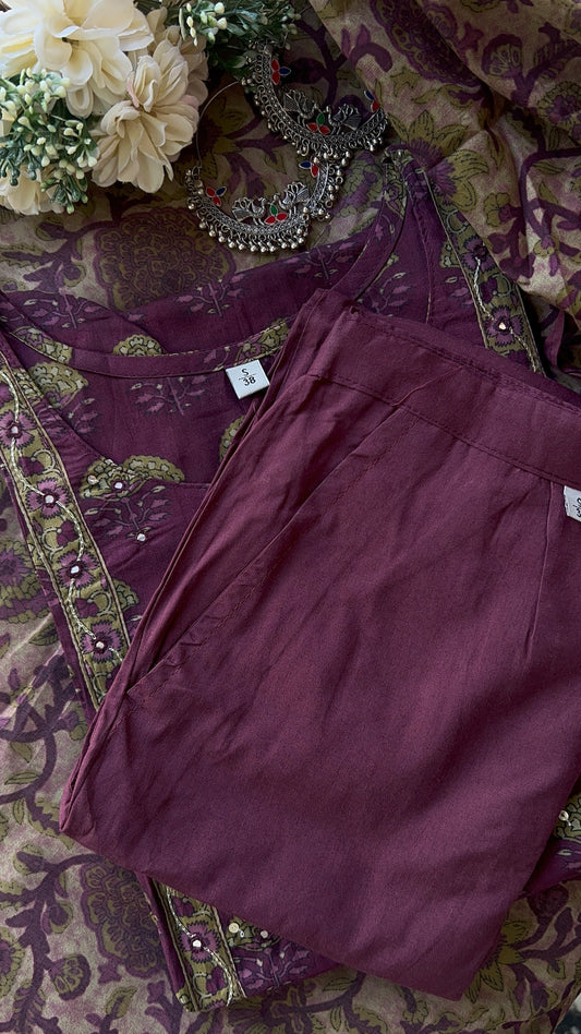 Womenâs Dark Purple Cotton kurta Set with Dupatta (38 to 52) | VGANG