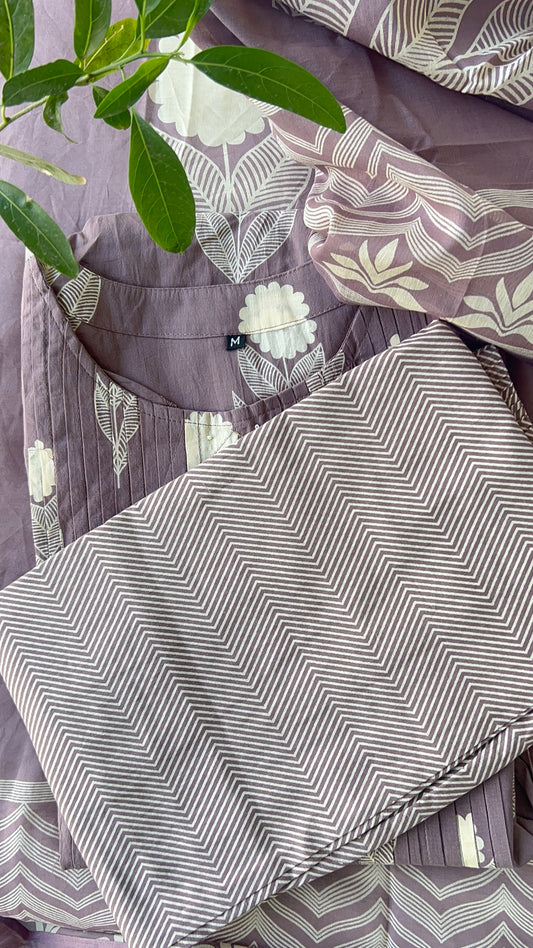Womenâs Lavender Cotton Kurta Set with Dupatta (38 to 44)