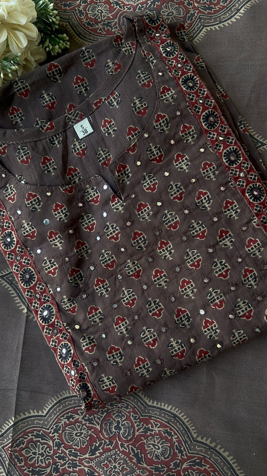 Womenâs Brown Cotton kurta set with dupatta (38 to 52) | VGANG