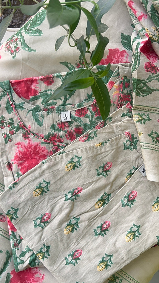 Womenâs Floral Print A line Cotton Kurta Set with Dupatta (38 to 52)