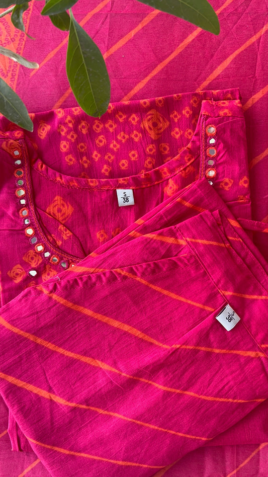 Womenâs Pink Cotton Kurta set with Dupatta (38 to 46)
