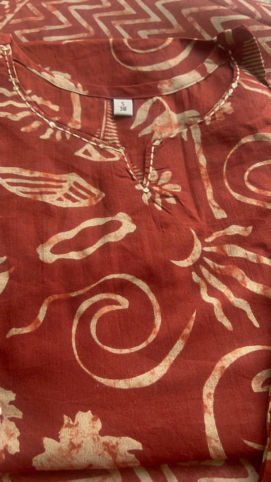 Womenâs Dark Rust Cotton kurta Set with Dupatta (38 to 52) | VGANG
