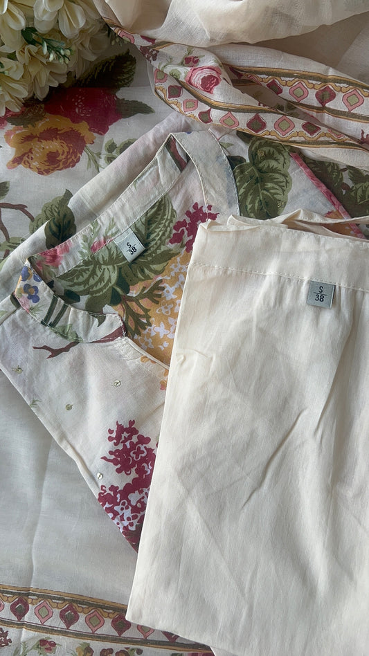 Womenâs Off white A Line Cotton Kurta set with Dupatta (38 to 52)