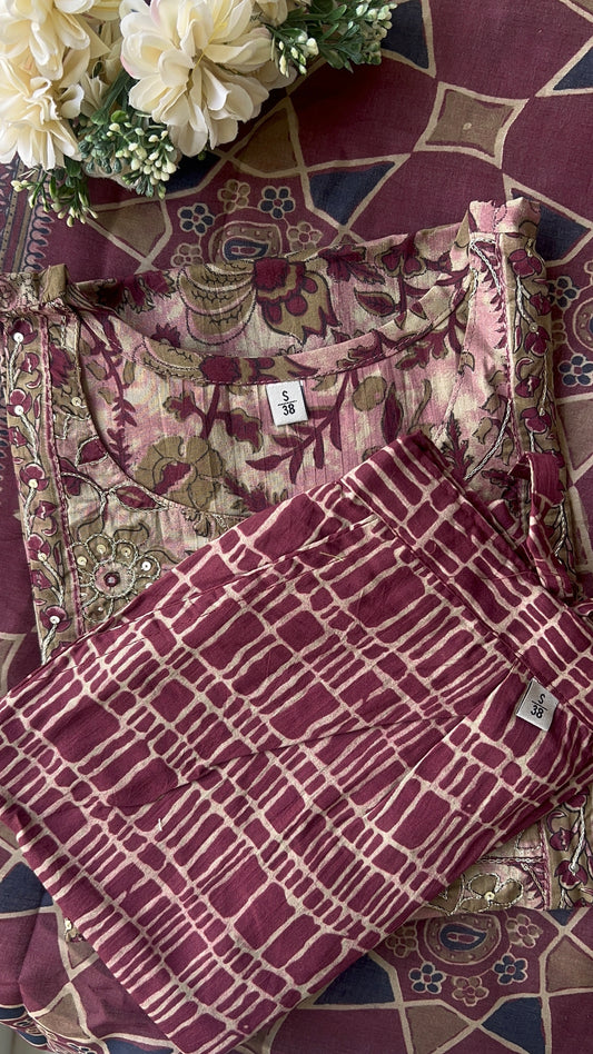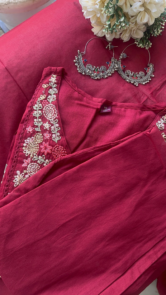 Womenâs Maroon Cotton Anarkali kurta set with Dupatta (38 to 46)