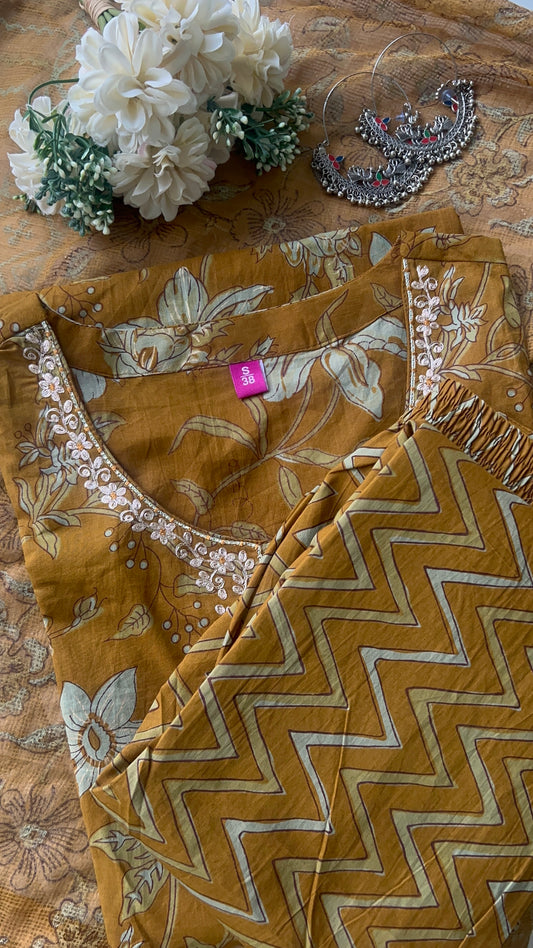 Womenâs Mustard Cotton Kurta Set with Dupatta (38 to 46) |VGANG