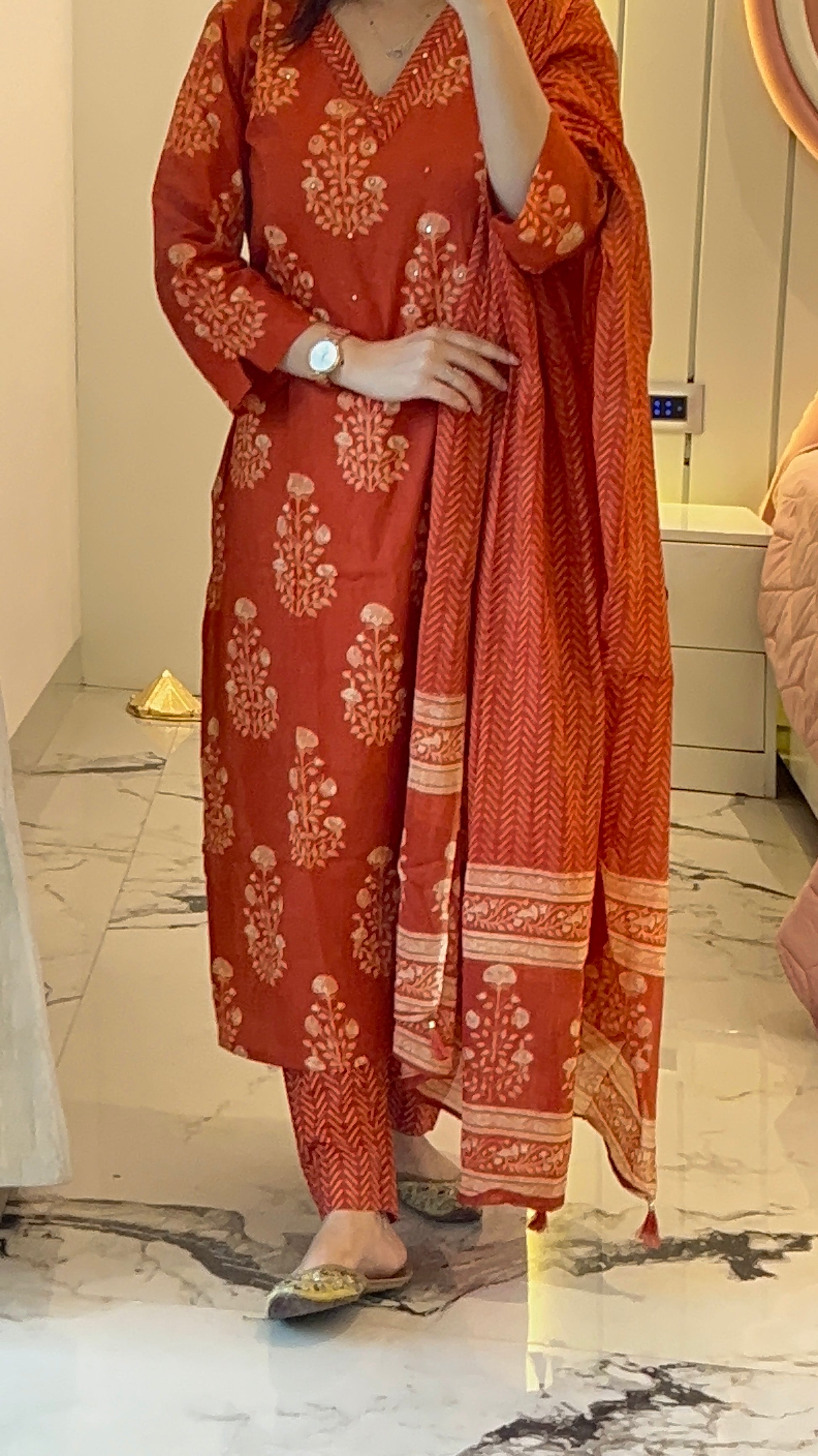 Pure Premium Rust Cotton Kurta Set with Dupatta ( 38 to 52 )